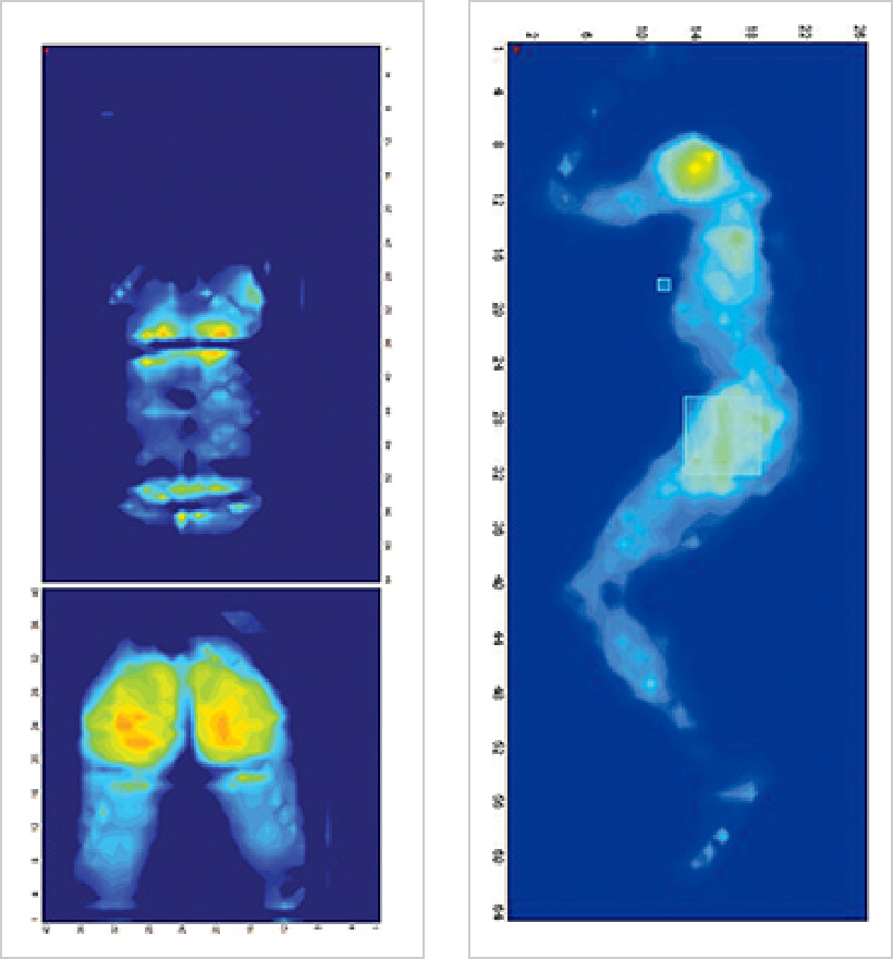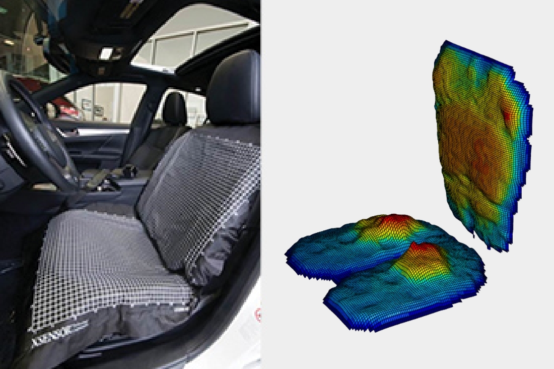 左:センサ2枚の同時計測 右:ベッドサイズのセンサ