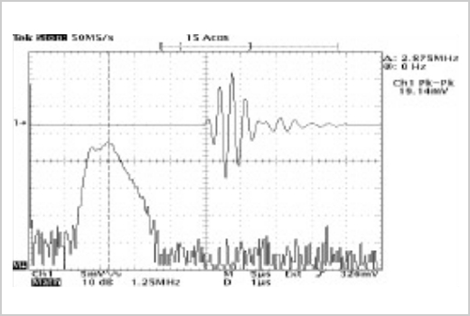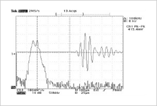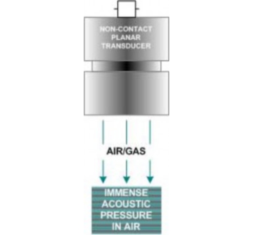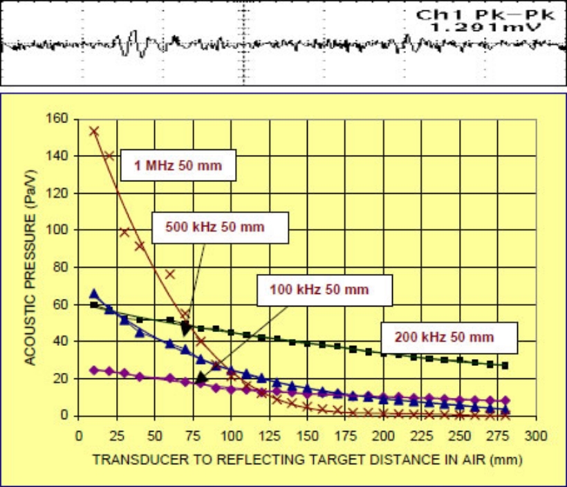 The new NCU transducers generate immense acoustic pressure in air between <100 kHz to 5 MHz. This is the key to Non-Contact Ultrasound and the magnitude of this development. Imagine 2.0 MHz transmission in 25 mm steel (6 orders of magnitude Z mismatch) with only one burst 16 Vpp and 64 dB amplification!