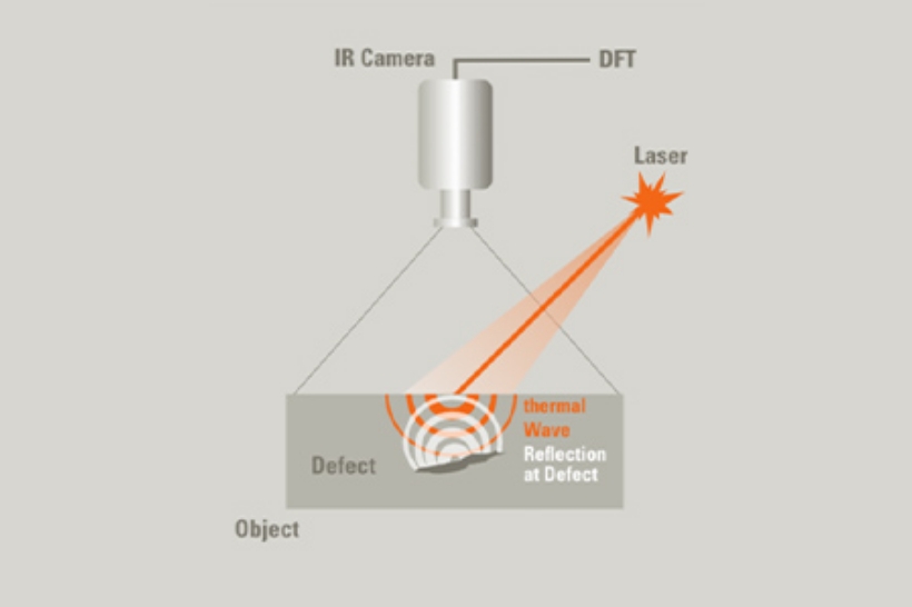集束されたレーザービームが、部品の表面を加熱します。局所的な熱は内側に向かって伝播します。クラックや層間剥離などの欠陥は熱の流れを乱し、可視化されます。