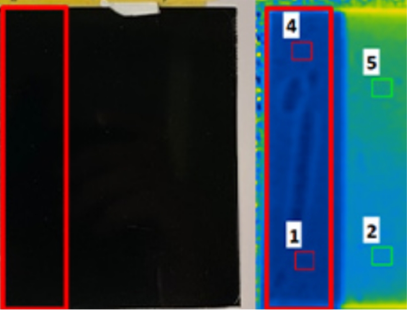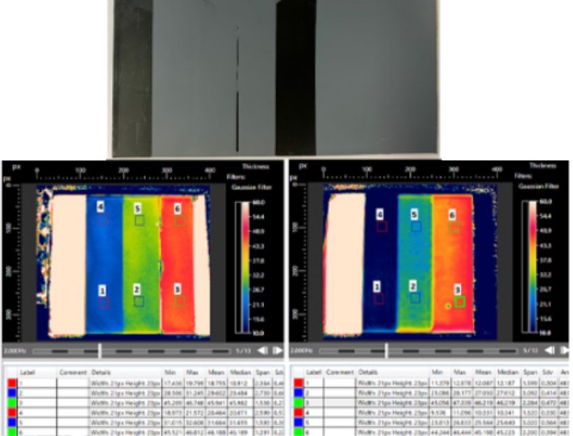 キセノンランプにより一瞬だけ入熱された熱エネルギーは、材料内部に伝播しながら自己放射を始めます。この時に発生するエネルギー応答速度の違いを可視化することで、品質評価を可能にしています。